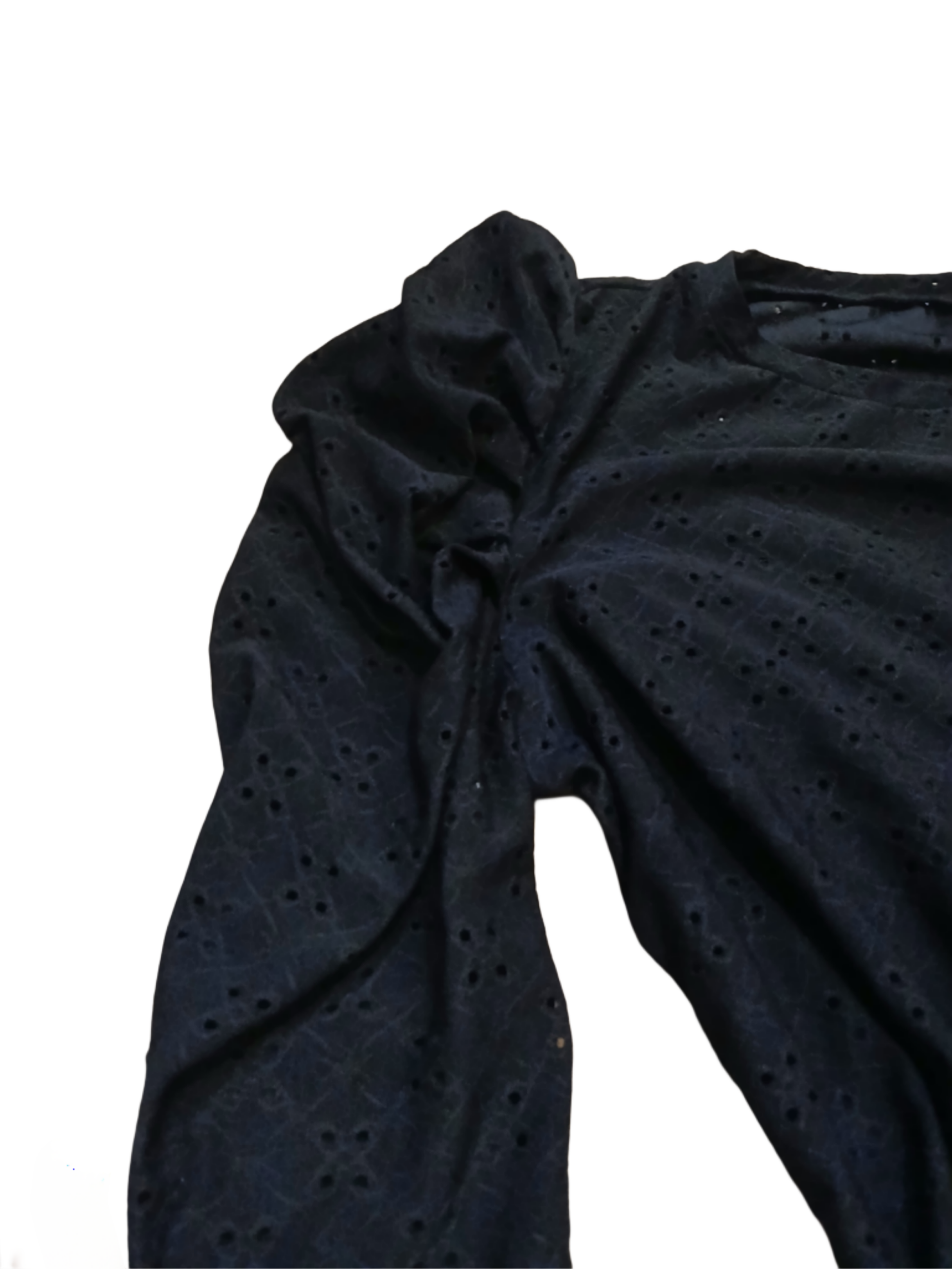 Black Eyelet Blouse, Ruffle Sleeve Top. Size 3X. 95% Polyester/5% Elastine.